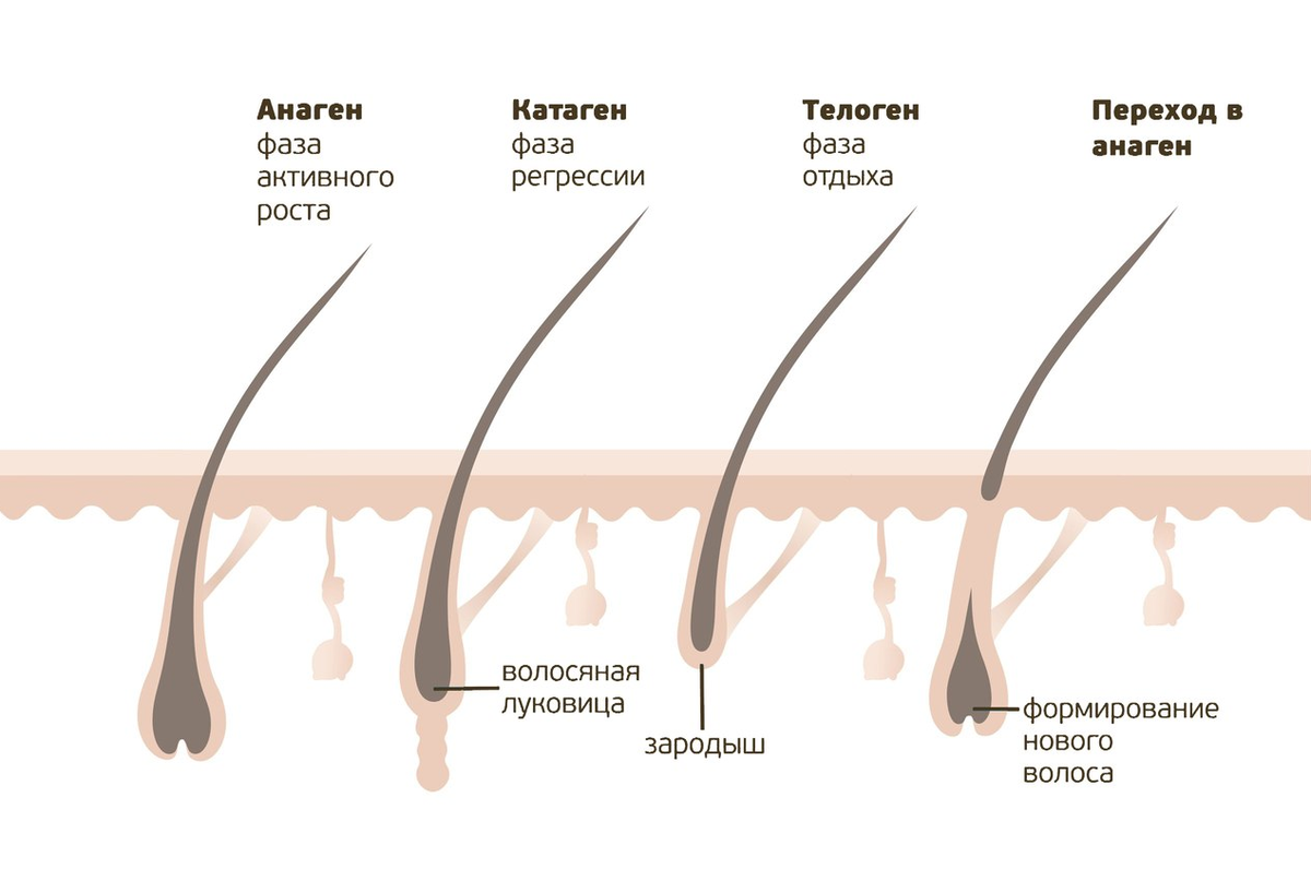 Выпадение — нормальный процесс для волос. В норме каждый волос проходит свой жизненный цикл, который состоит из: